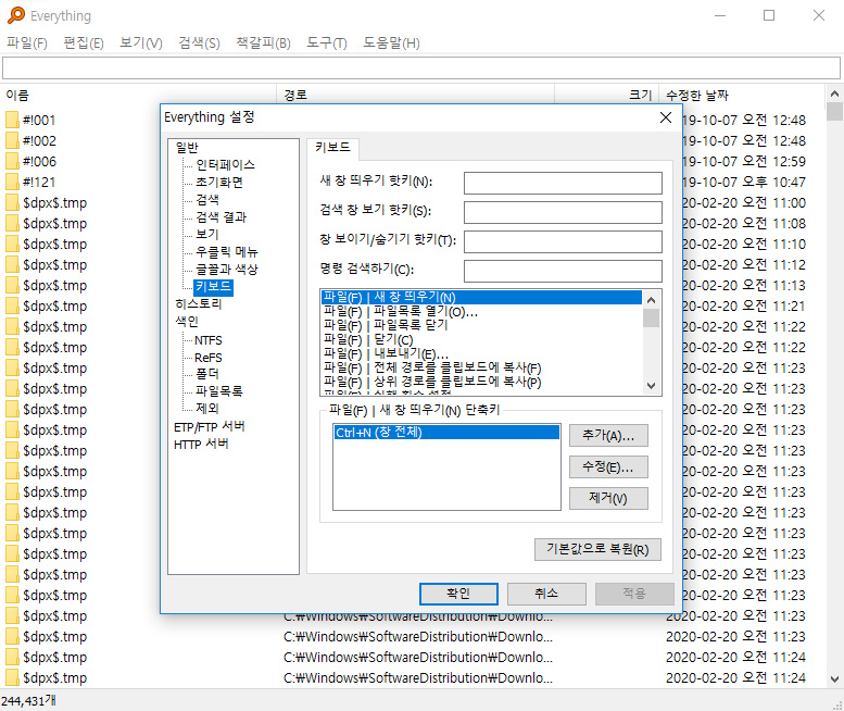 최초로 Everything을 실행 시 Everything이 파일을 찾아서 경로를 저장해 둡니다.