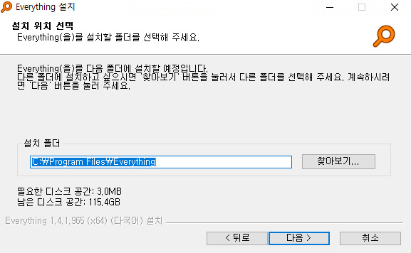 Everything은 3.0MB로 매우 가볍기 때문에 어디에 설치하든 큰 상관은 없습니다!
