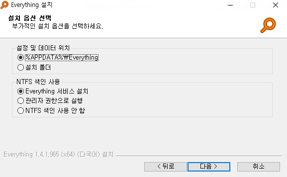 (특히 NTFS 색인의 경우, 서비스 설치를 하시는 것이 추후에 불편하지 않습니다.)