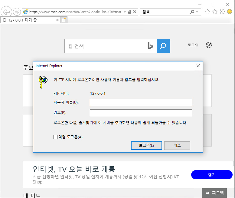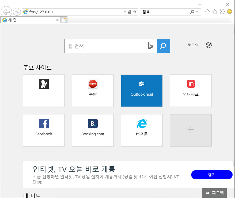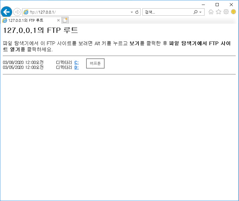 주소창에 FTP://127.0.0.1 또는 FTP://0.0.0.0, FTP://localhost를 쳐줍시다.