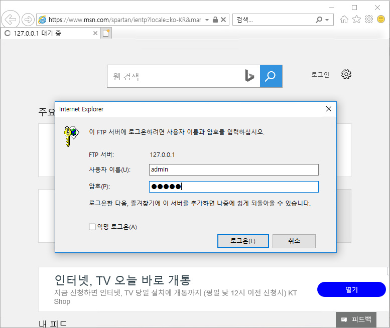 (저는 FTP://127.0.0.1를 사용하였습니다.)