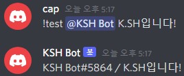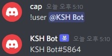 # 채팅창에 "!user @<원하는 유저>"입력시 "<원하는 유저>" 출력.