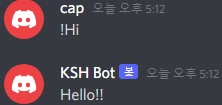 # 채팅창에 "!Hi"입력시 "Hi!" 출력