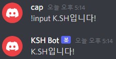 # 채팅창에 "!input <원하는 내용>"입력시 "<원하는 내용>" 출력.