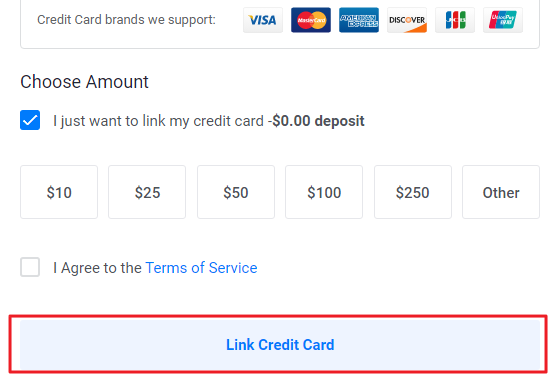 6. "Link Credit Card"를 통해 카드 등록을 완료합니다.
