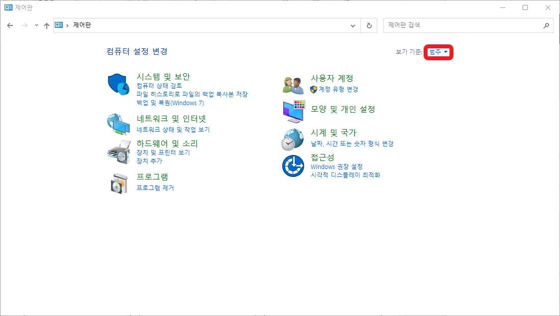 (만약 제어판 화면이 다르다면, 아래 "더보기"를 눌려주세요.)