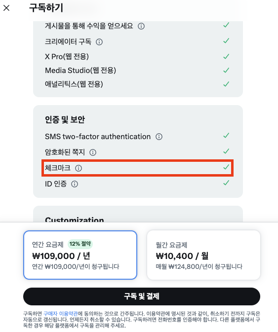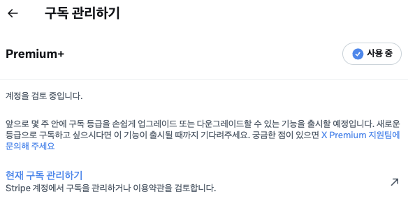 어쩔수 없이 기존에 가입해두었던 트위터 계정에 X Premium+를 구독하였습니다.