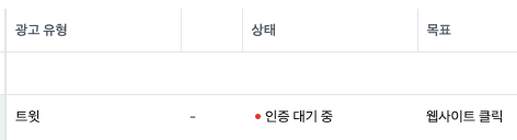 당연하지만 광고도 여전히 "인증 대기 중"에서 멈춰있습니다.